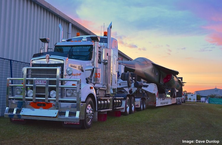 At 2.00am on Tuesday May 21st, the aircraft left Amberley RAAF Base. Early morning travellers on the Bruce Highway witnessed a special event as the aircraft made its way, under police escort, to its' new home. The operation required 2 semi trailers, one to hold the aircrafts' body and the other for the wings.